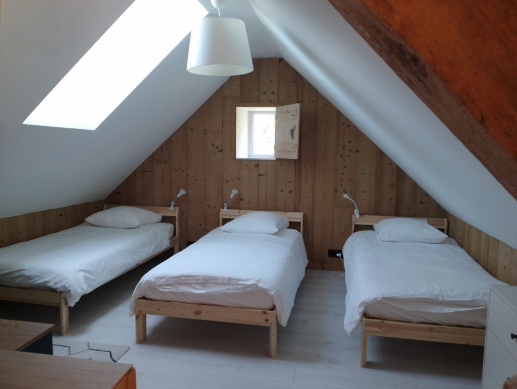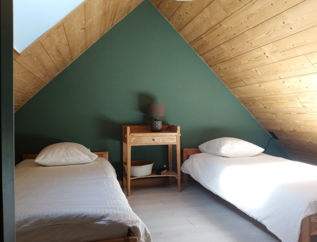 1 à l’étage (mansardé) avec 2 lits de 90×200*